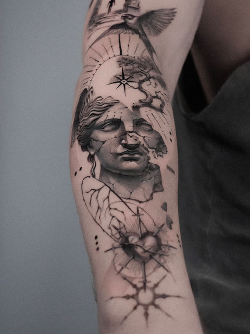 I started tattooing in 2014, and at that time I did all styles and really experimented with different types of art. It was only in 2018 that I began to create my own tattoo style, which combines geometry, realism, fine line, and abstract concepts. Nowadays, I would say my tattoos are conceptual art, but to be honest, I hate labels. I am always open to new ideas that will help me achieve a piece of art that will make my clients feel happy and also feel that their tattoo represents a bit of who they are or dream of becoming.